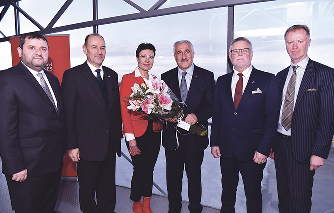 Ensimmäistä lentoa Istanbulista Rovaniemelle juhlistettiin itsenäisyyspäivän aattona. Mukana olivat suurlähettiläät Mehmet Vakur Erkul ja Ari Mäki sekä Rovaniemen matkailusta vastaava Sanna Kärkkäinen ja kaupunginjohtaja Esko Lotvonen (toinen oik.).